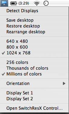 Some features that only SwitchRes provides in one single utility:SwitchResX in your menu bar. Not just another Displays menu.